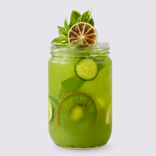 Fresh mint, cucumber, kiwi, fresh lemon and soda water.